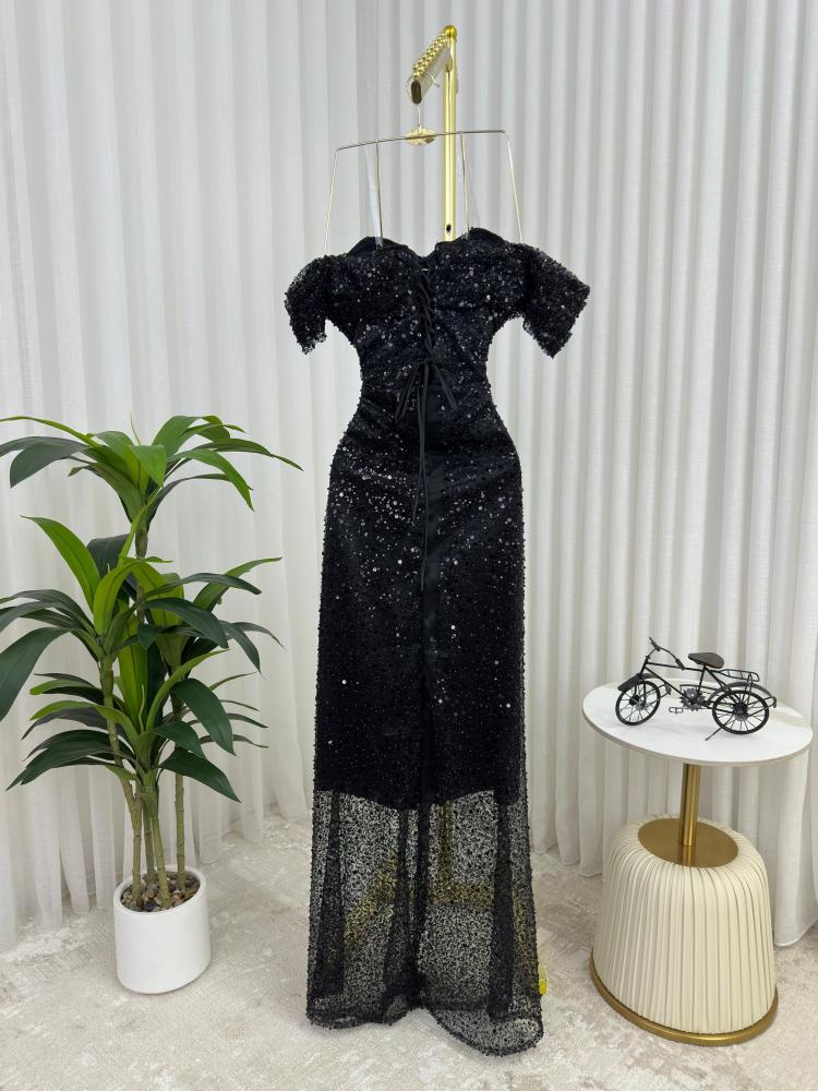 فساتين ترتر فاخرة بتصميم أنيق يجمع بين قماش التفته الاسترتش واللمسات المطرزة بالترتر، تمنحكِ تألقاً لافتاً وحضوراً جذاباً في جميع المناسبات الراقية.