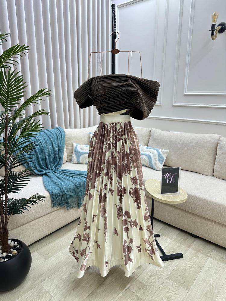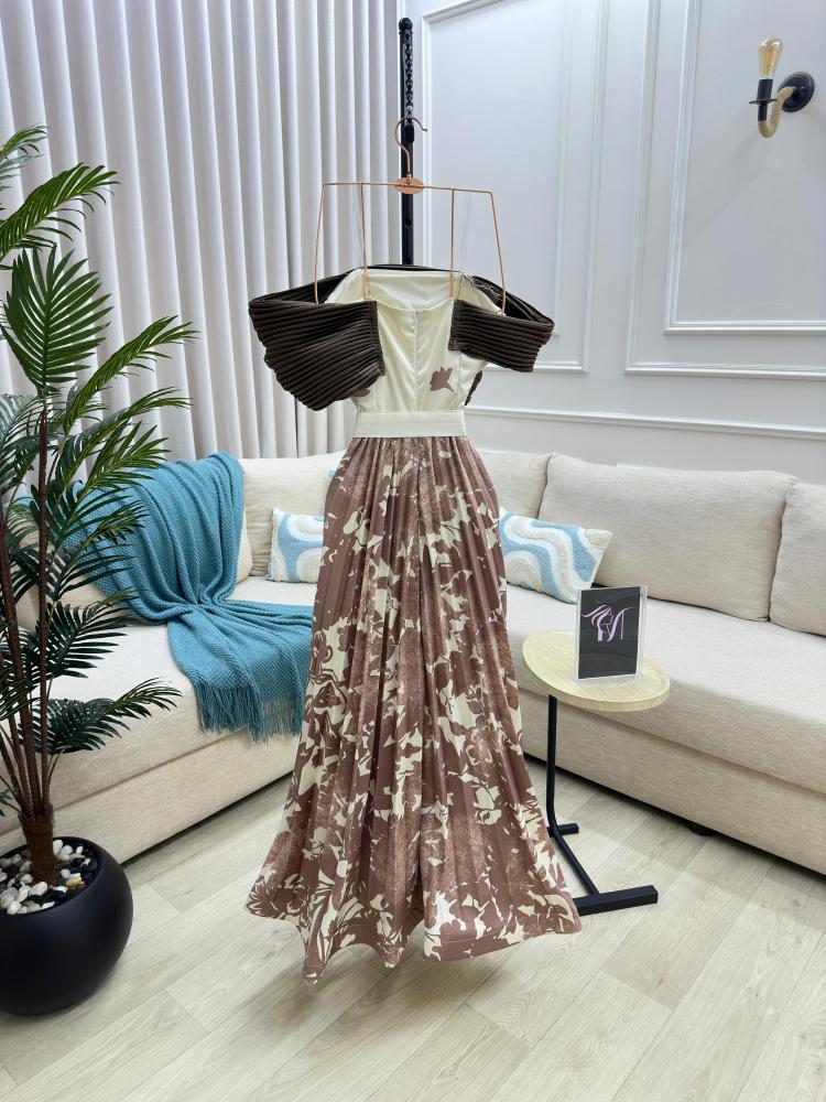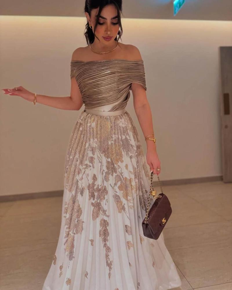 فساتين تفته بتصميم مبتكر يجمع بين الأناقة والفخامة، يتميز هذا الفستان بطباعة أنيقة وصدرية بيلسيه تضيف لمسة فنية مميزة لإطلالتكِ في المناسبات الخاصة.