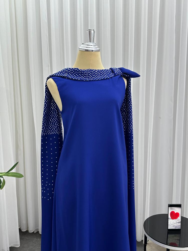 - التصميم: فستان طويل تطريز فصوص لامعة